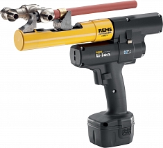 - REMS Акс-Пресс 25 L ACC базовый пакет. Аккумуляторный, аксиальный пресс для изгото вления соединений с натяжной гильзой Ø 12 – 40 мм. Ход 40 мм, для запрессовки натяжных соединений с межосевым расстоянием ≤ 116 мм. Для привода обжимных головок REMS. Электрогидравлический привод с аккумуляторным двигателем, 14,4 В, 420 Вт, планетарным редуктором, эксцентриковым поршневым насосом и компакт ной мощной гидравлической системой. Переключатель безопасности. Встроенный рабочий светодиодный светильник. Аккумулятор Li-Ion 14,4 В, 1,6 Aч, быстрозарядное устройство Li-Ion/Ni-Cd 230 Вт, 50 – 60 Гц, 65 Вт. Без пресс-головок. В прочном стальном чемодане