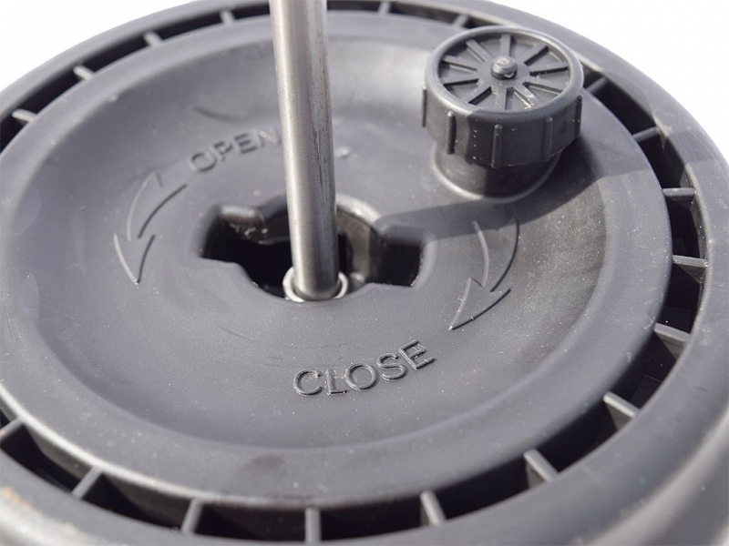 - Клапан для сброса давления позволяет открыть крышку бака без брызг, возникающих при остаточном давлении в баке