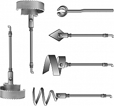 - Более 30 видов различных прочистных насадок позволяют выполнять прочистку труб от разных видов отложений, наносов и удаление посторонних предметов