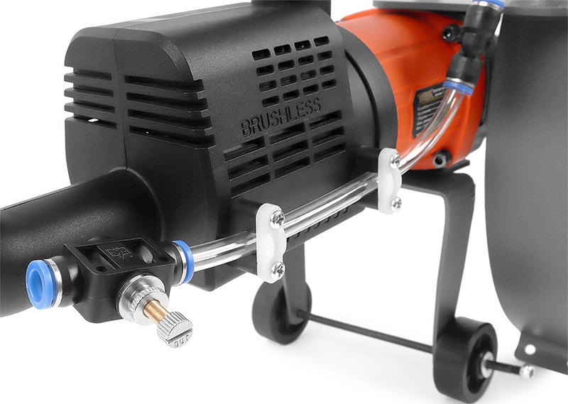 - В комплекте идет все необходимое, чтобы сразу начать работу: режущее алмазное кольцо, помпа для подачи воды, шланги