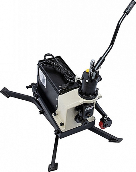 Электрический гидравлический желобонакатчик Rotorica RG-1S (Роторика РГ-1С) – с модернизированным ручным гидравлическим насосом – грувлочный желобонакаточный станок с модернизированной ручной гидравлической подачей накатывающего ролика для накатки канавок (желобков) на углеродистых стальных трубах из углеродистой стали Ø 1" – 8" (25 – 200 мм) sch. 7/10/20/40 и нержавеющих стальных трубах из нержавеющей стали Ø 1" – 8" (25 – 200 мм) sch. 40, толщиной стенки до 8 мм при монтаже водопроводных, отопительных, пожарных и промышленных трубопроводов без применения сварки. Отличное решение для выполнения больших объемов работ на стройплощадке или в цехе производства.