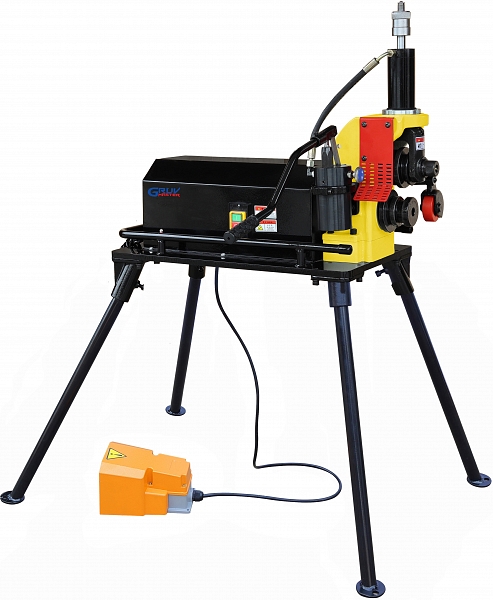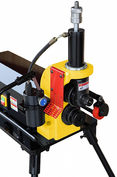 - Мощный двигатель и 2 гидравлических насоса подачи накатывающего ролика на трубу, удобное ножное включение