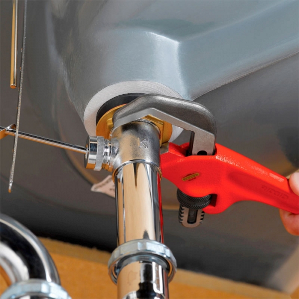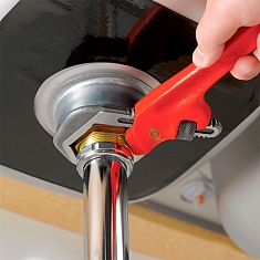 - Особо широкое раскрытие щек идеально для затягивания гаек на стоках раковин и ванн