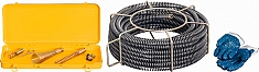 Комплект спиралей, насадок и инструмента для прочистки канализации Rems 22 мм (Ремс 22 мм) предназначен для очистки канализационных труб Ø 50 – 150 мм, длиной до 22,5 (максимально 100) м с использованием электрических прочистных машин.