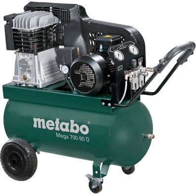 Мощный поршневый компрессор Metabo Mega 700-90 D (Метабо Мега 700-90 Д) с масляной смазкой – достаточно надежное пневматическое оборудование с клиноременной передачей для сжатия воздуха и его дальнейшей подачи к приборам с возможностью работы в сложных условиях.