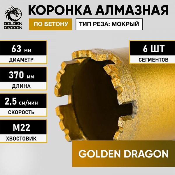 Преимущества коронки алмазной по бетону Golden Dragon М22 63/370 мм: