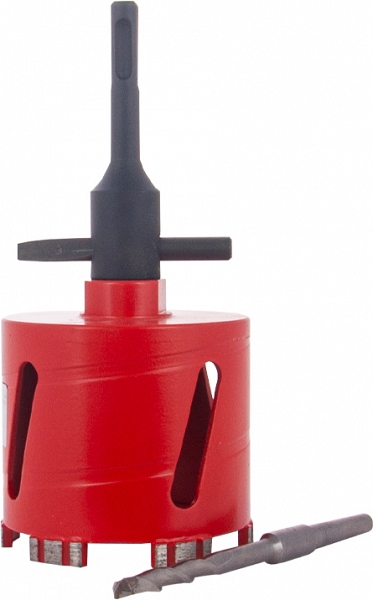 Коронка для подрозетников по бетону с переходником M16/SDS-Plus Diam Master Line 82 мм (Диам Мастер Лайн 82 мм) – алмазное кольцевое сверло для ручного сухого сверления глухих подрозеточных отверстий Ø 82 мм в стенах из кирпича, неармированного и слабоармированного бетона без применения охлаждающей жидкости. Лазерная сварка алмазных сегментов обеспечивает надежное соединение сегментов и корпуса сверла, что практически исключает отрыв сегмента в процессе сверления.