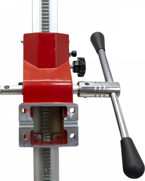 - Рабочая каретка перемещается по стойке с помощью стальной зубчатой рейки
