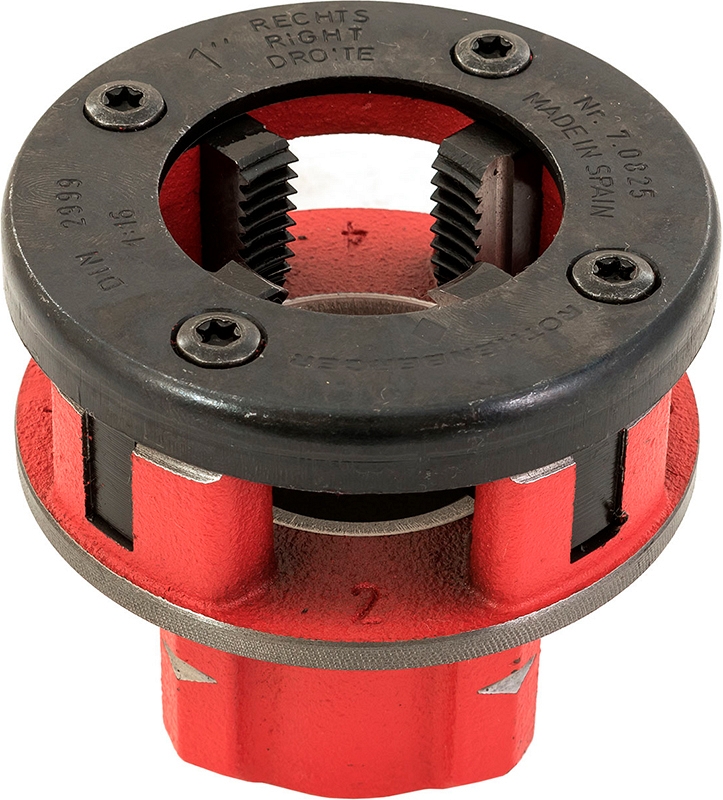 Резьбонарезная головка для клуппов Rothenberger Super Cut BSPT R 1" (Ротенбергер Супер Кат БСПТ Р 1") предназначена для нарезки правой конической трубной резьбы BSPT R на трубах Ø 1", изготовления точных резьбовых соединений в соответствии с DIN EN 10226.