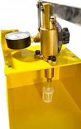 - Латунный износостойкий рычажный насос для опрессовки с манометром и цельным запорным клапаном