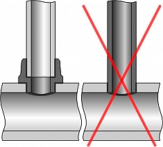 - Приварка седелок – комбинированный (одновременно встык и враструб) метод сварки, поэтому перед сваркой требуется сверловка отверстия в трубе. Для установки седлового отвода DN 32 мм требуется отверстие Ø 31,1+0,4 мм