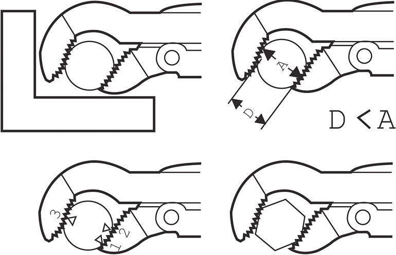 - Узкие губки особой S-образной формы отлично подходят для работы в ограниченном пространстве