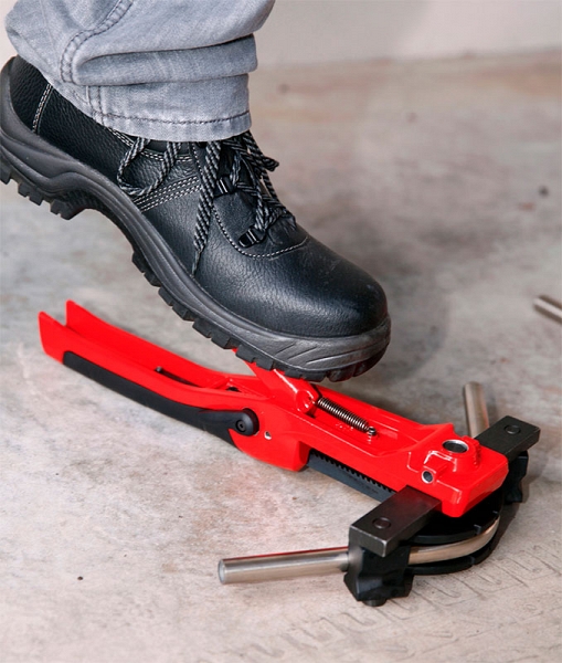 - Многофункциональное использование: одной рукой для быстрого сгибания труб (большая часть диаметров), двумя руками или можно работать даже ногой для увеличения усилия при сгибании более жестких материалов и больших диаметров
