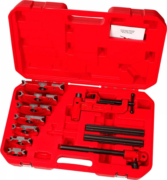 – Желтые стандартные сегменты: Ø труб 10 – 22 мм, толщина стенки труб 1 - 1,5 мм, угол изгиба 0° – 180°, малый радиус изгиба - Дополнительная принадлежность для крепления на верстаке: опорное основание, в которое устанавливается трубогиб, экономит место и позволяет работать в горизонтальном и вертикальном положении, хранится в чемодане для трубогиба