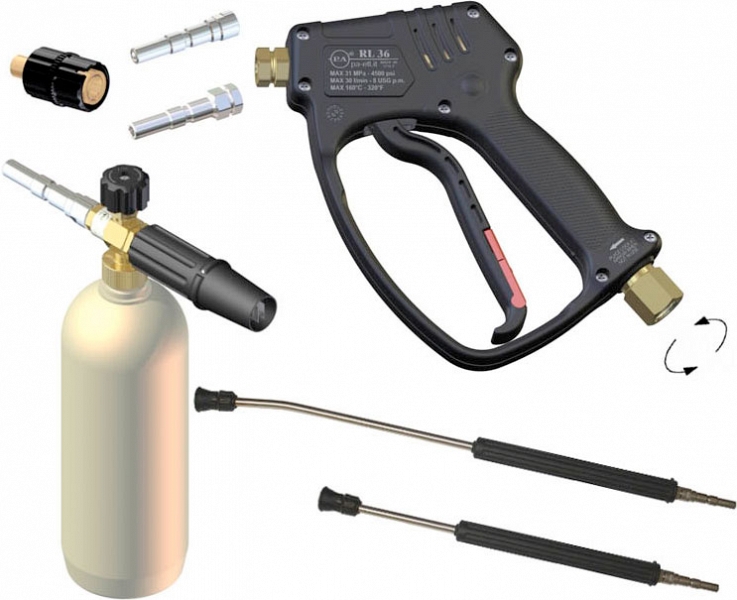 | 30.1550.00 | Пистолет RL36, 280 бар на вертлюге, вход 3/8" мама BSP, выход 1/4" мама BSP | 0,56 кг |